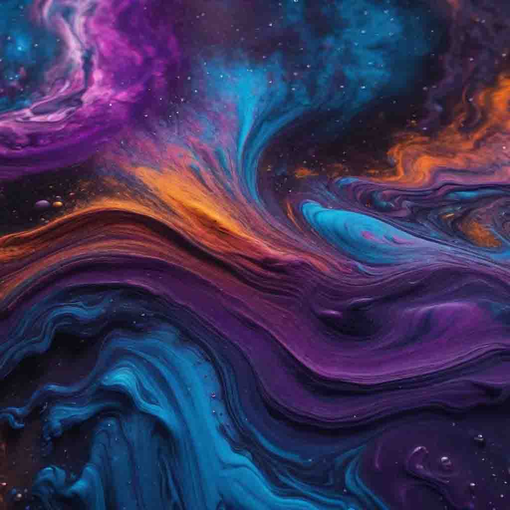 • 《銀河之舞》:這幅作品以藍色和紫色的流動顏料營造出銀河的意境,宛如置身於浩瀚星空中。